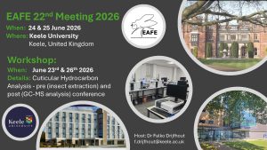 On behalf of the Chemical Ecology Group School of Chemical and Physical Sciences, Keele University we are pleased to invite you to the June 23rd-26th 2026. Check out all the news on separete devoted to the EAFE 22nd Meeting page.